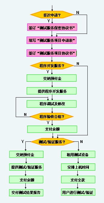 - 根据用户填写的“测试服务项目申请表”,与用户签订“测试服务项目协议书”。