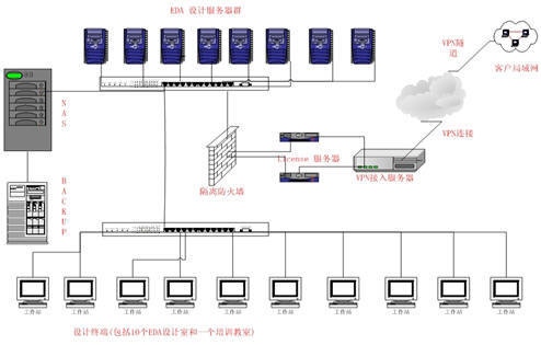 2)EDA平台配备了SUN的服务器群(8台SUN Blade2000,配置为双cpu,4G内存,73G本地磁盘)